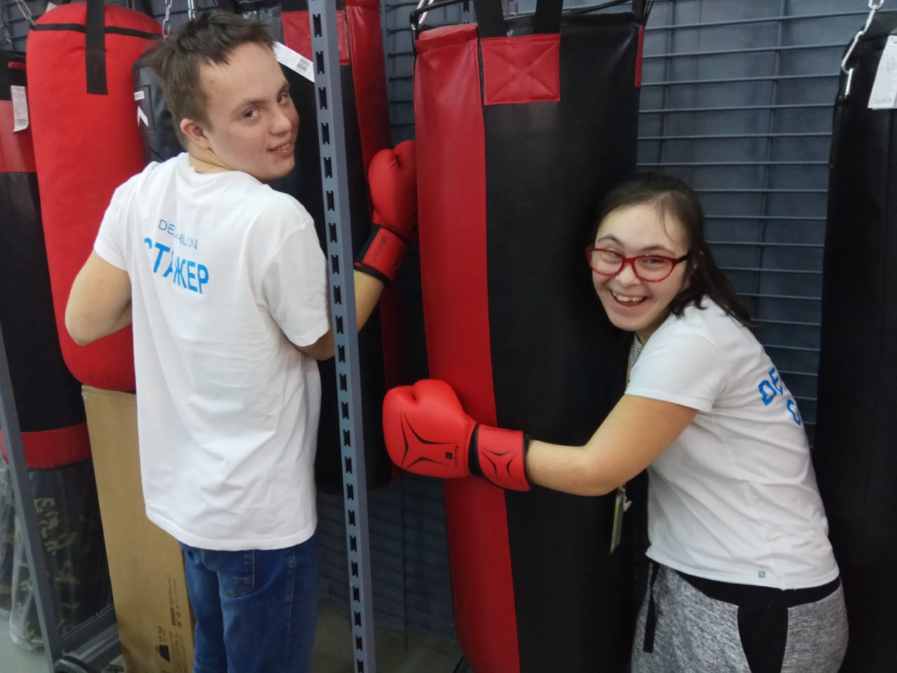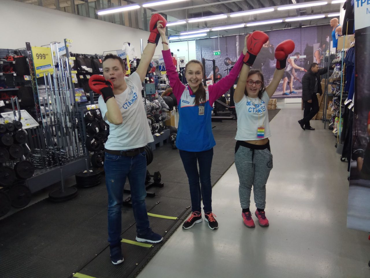 Ваня и Арина, молодые люди с синдромом Дауна, несколько месяцев проходили стажировку в одном из московских магазинов сети «Декатлон» зимой и весной 2018 года. Ребята работали в отделе теннисной экипировки в торговом зале, следили за наличием товара, его раскладкой, знали весь ассортимент и при необходимости могли показать нужный товар покупателю. Первые несколько недель с ними постоянно находился сопровождающий — социальный работник фонда «Даунсайд Ап» и наставник — сотрудница магазина Лена. Потом — только наставница. Венцом успешной стажировки могло стать постоянное трудоустройство в штат. И хотя ребята с работой справлялись и уже мечтали, что смогут освоить ассортимент других отделов, так сложилось, что под конец стажировки в магазине сменился директор, а потом уволилась Лена, и следующий этап не состоялся.