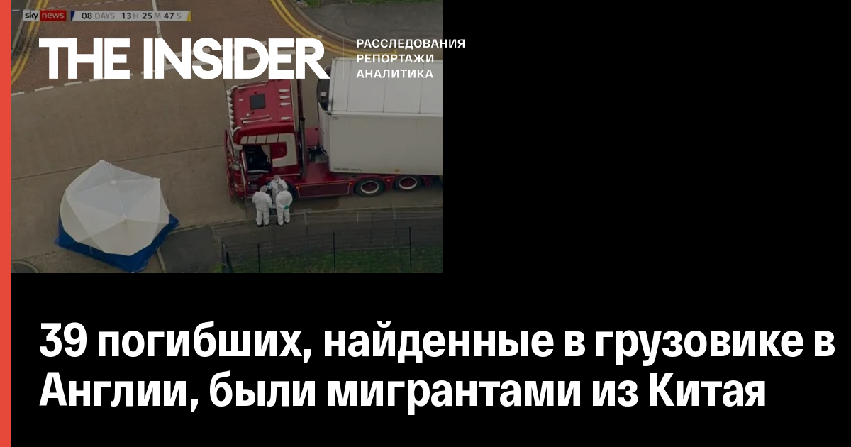 39 человек, чьи тела были найдены в грузовике в Англии, были гражданами Китая, сообщает BBC News.