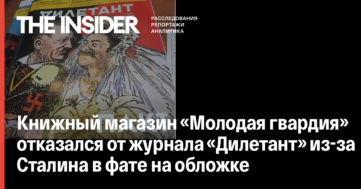 Московский книжный магазин «Молодая гвардия» отказался продавать свежий номер исторического журнала «Дилетант», на обложке которого изображены Адольф Гитлер и Иосиф Сталин. Об этом сообщил в Twitter соучредитель издания Алексей Венедиктов.
