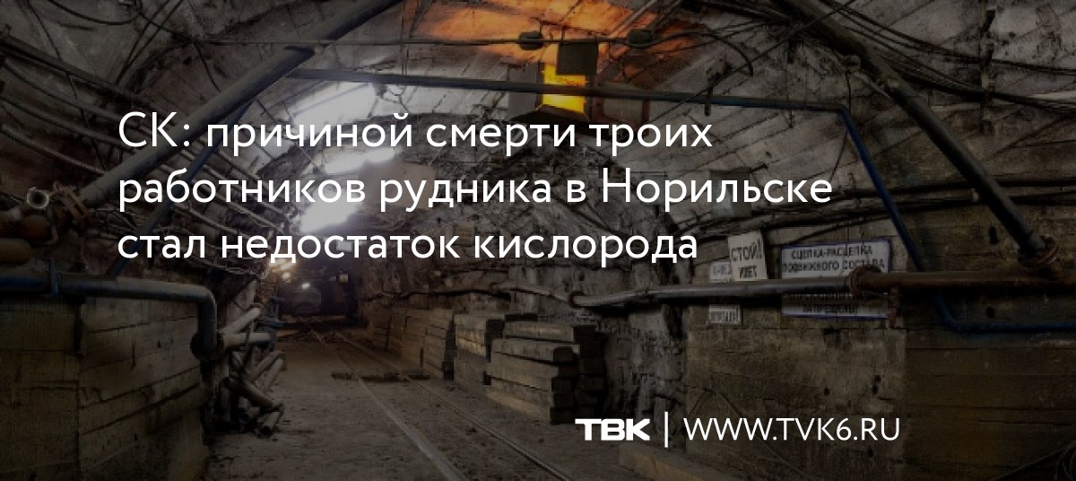 СК: причиной смерти троих работников рудника в Норильске стал недостаток кислорода