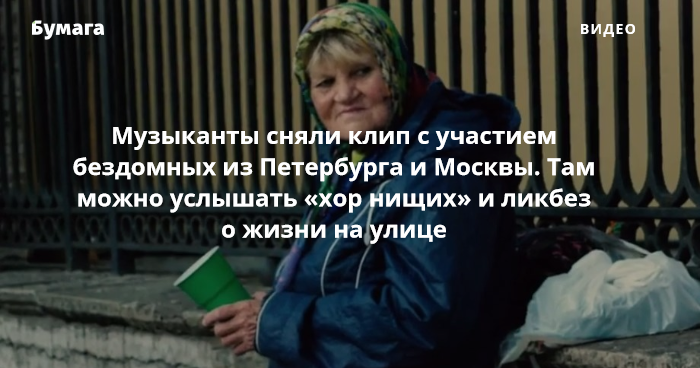 Группа «Грачи прилетели» выпустила клип на песню «Пусть», в котором снялись бездомные из Петербурга и Москвы. Видео можно посмотреть на ютьюбе.