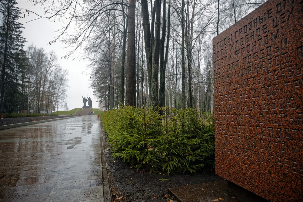Фото: пресс-служба мэрии Томска, Валерий Доронин В 2019 году губернатор области Сергей Жвачкин выделил деньги на продолжение работ. Подрядчики в этом году переустановили 267 намогильных плит из черного гранита, сняли прежнее плиточное покрытие и гранитные бортовые камни, которые были деформированы и потеряли привлекательный вид, и заменили их. Также на лестницах обновили ступени, выложили рулонный газон и высадили 68 елей. Планируется посадить еще семь, чтобы символически подчеркнуть юбилейную дату.