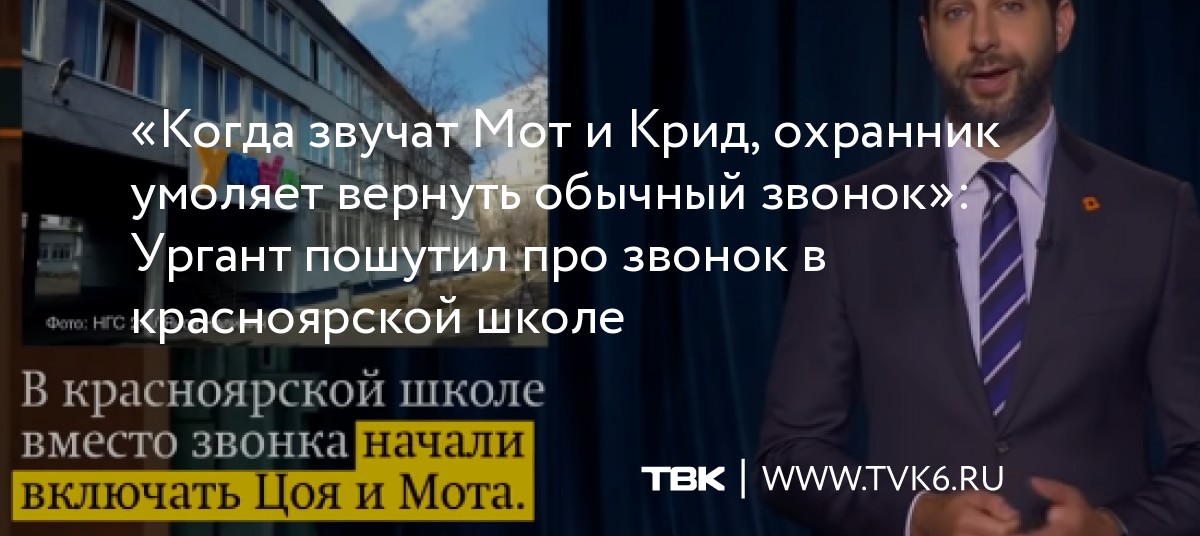 «Когда звучат Мот и Крид, охранник умоляет вернуть обычный звонок»: Ургант пошутил про звонок в красноярской школе