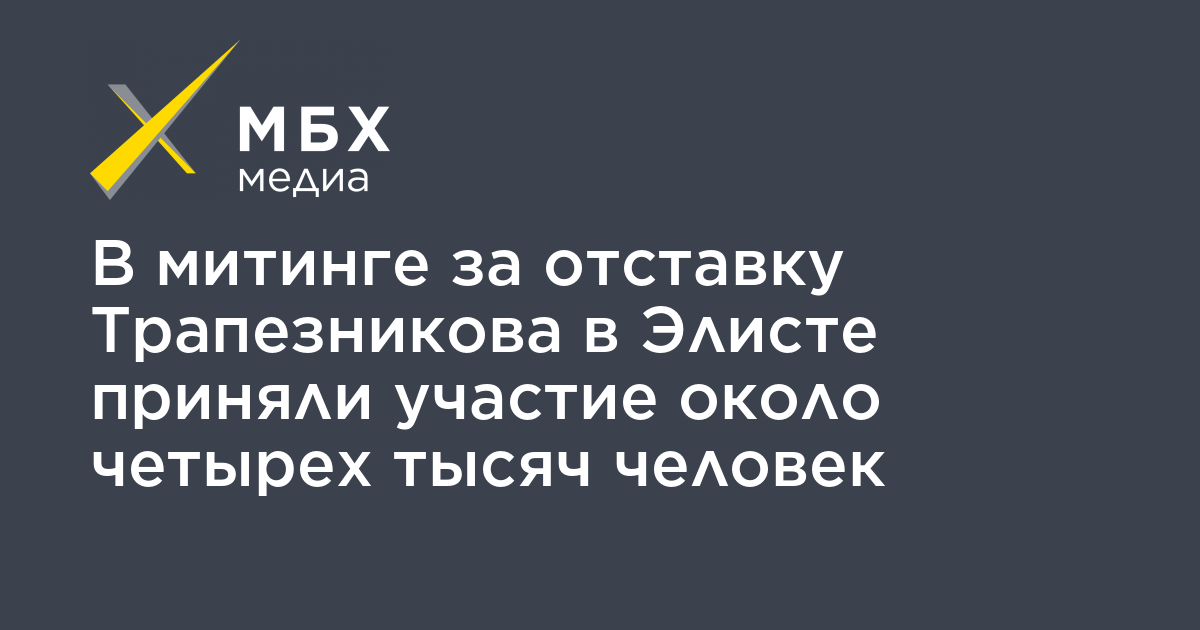 В митинге за отставку назначенного мэра Элисты Дмитрия Трапезникова приняли участие около четырех тысяч человек . Об этом «МБХ медиа» сообщил один из инициаторов акции Бадма Бюрчиев.