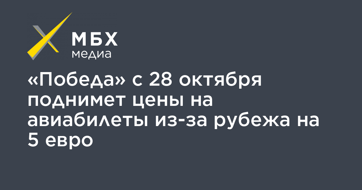 «Победа» с 28 октября поднимет цены на авиабилеты из-за рубежа на 5 евро
