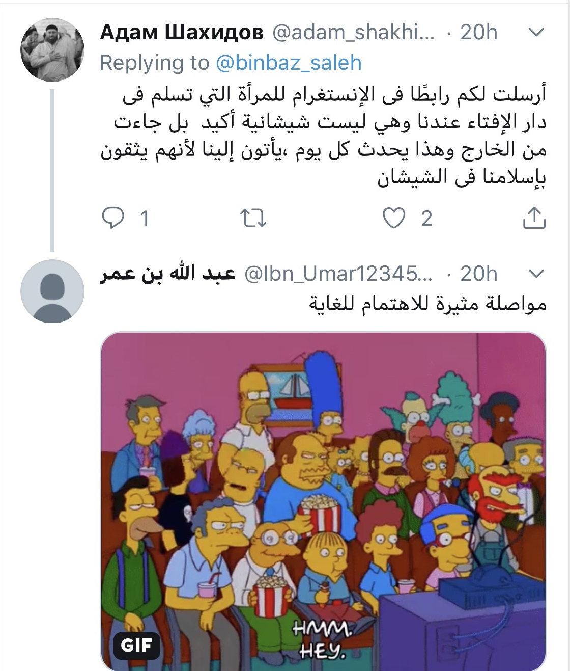 Комментируя их дискуссию, пользователи на русском языке отметили, что Адам Шахидов убегает от диспута. На арабском написали, что ребенок здесь – это Рамзан Кадыров. Под очередным высказыванием Шахидова разместили скрин из мультика про Симпсонов, иронизируя: "Это дополнение крайне важно".