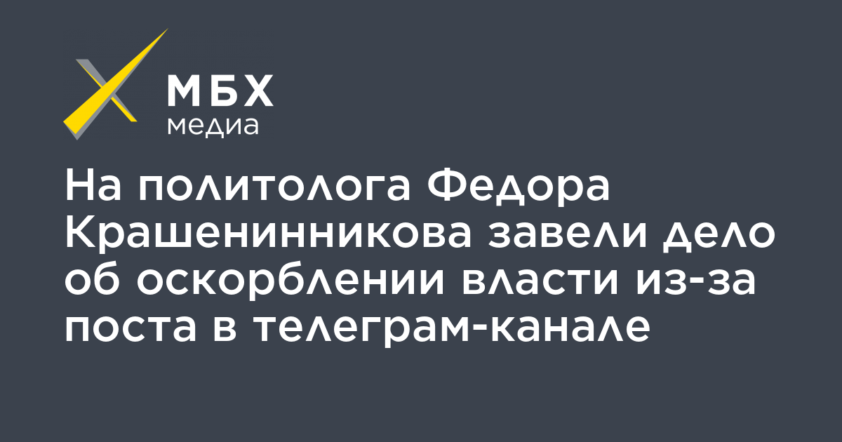 На политолога из Екатеринбурга Федора Крашенинникова завели административное дело об оскорблении власти (часть 3 статьи 20.1 КоАП) из-за поста в телеграм-канале про суд над Леонидом Волковым. Об этом он сам рассказал «МБХ медиа»