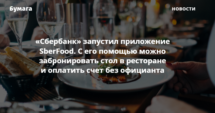 «Сбербанк» запустил мобильное приложение SberFood — сервис для похода в рестораны. С его помощью можно забронировать стол в заведении, заказать еду, разделить и оплатить счет без официанта.
