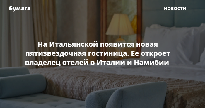 На улице Итальянской, 8А откроется пятизвездочный отель. Помещение, где сейчас находится офис МТС, реконструирует дочерняя компания АФК «Система» — Cosmos Hotel Group, сообщают «Ведомости» со ссылкой на ее президента Александра Швейна.