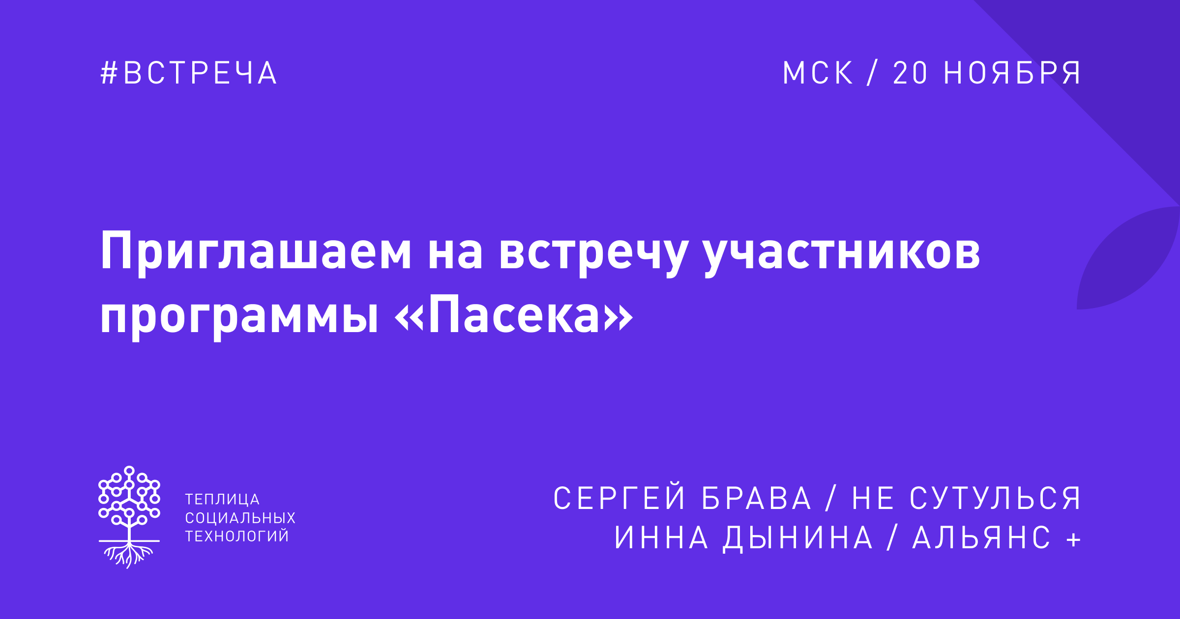 Программа «Пасека» – сообщество веб-студий, агентств, IT-компаний и независимых профессионалов, заинтересованных в работе с некоммерческими организациями и социальными проектами.