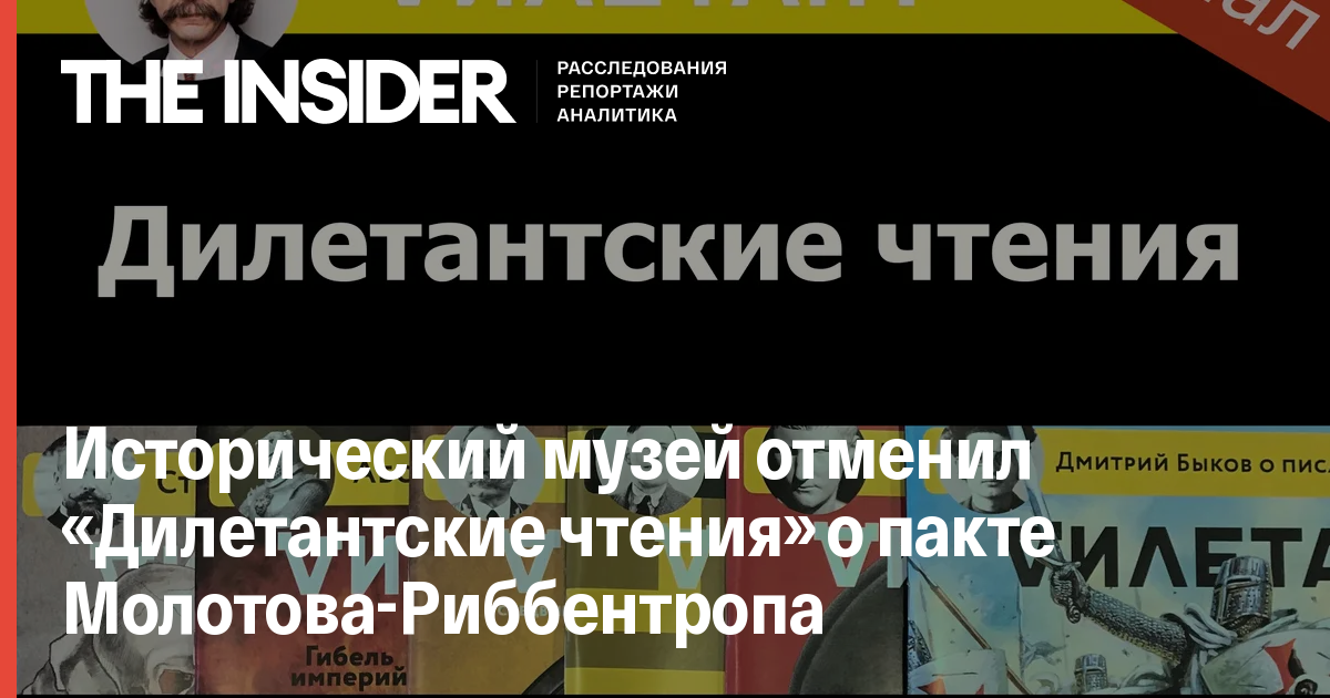 Исторический музей отменил «Дилетантские чтения» на тему пакта Молотова-Риббентропа, потому что дискуссия была бы «крайне неэтична» в преддверии Дня народного единства и 75-летия Дня победы. Об этом на своей странице в Twitter сообщил основатель исторического журнала «Дилетант» Алексей Венедиктов.