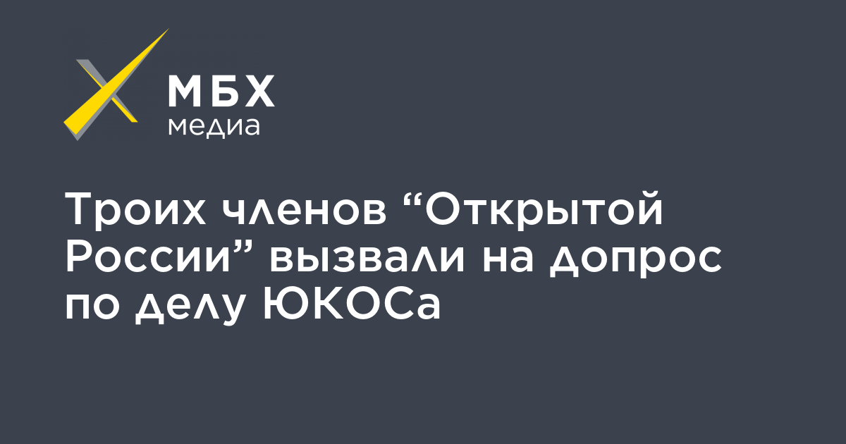 Троих членов московского отделения общественной организации «Открытая Россия» вызвали на допрос в Следственный комитет по делу ЮКОСа 2003 года. Об этом сообщила «МБХ медиа» председатель организации Анастасия Буракова.