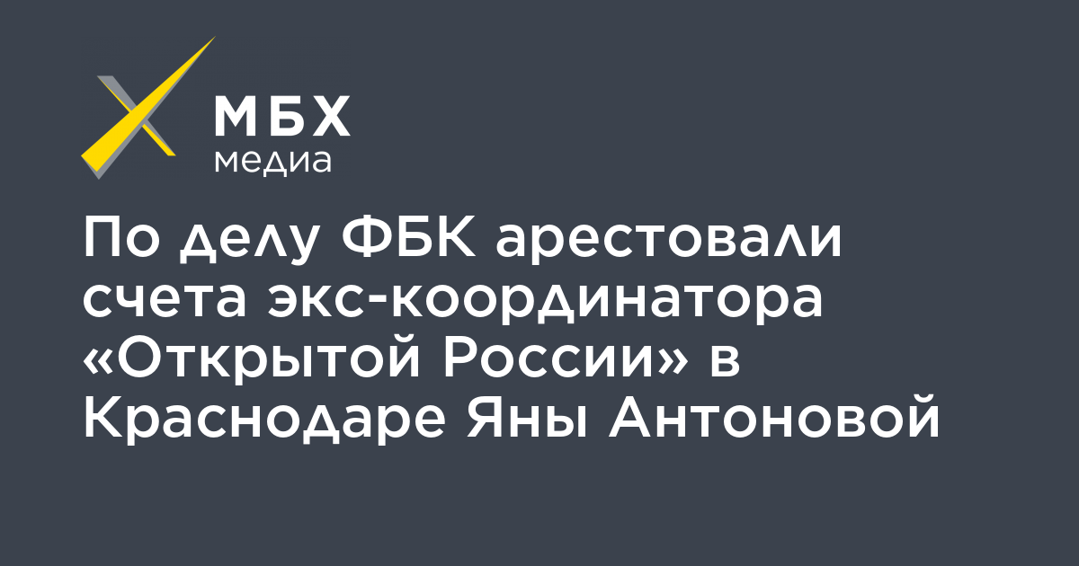 Суд арестовал все счета экс-координатора «Открытой России» в Краснодаре Яны Антоновой. Об этом «МБХ медиа» рассказал координатор «Правозащиты Открытки» Алексей Прянишников.