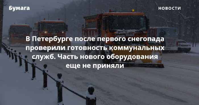 Власти Петербурга после первого снегопада проверили готовность коммунальных служб к зиме. Об этом сообщается на сайте Смольного.