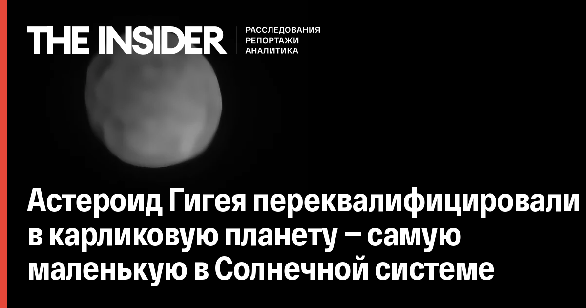 Астероид Гигея переквалифицировали в карликовую планету — самую маленькую в Солнечной системе