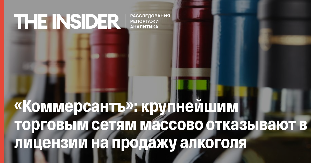 «Коммерсантъ»: крупнейшим торговым сетям массово отказывают в лицензии на продажу алкоголя