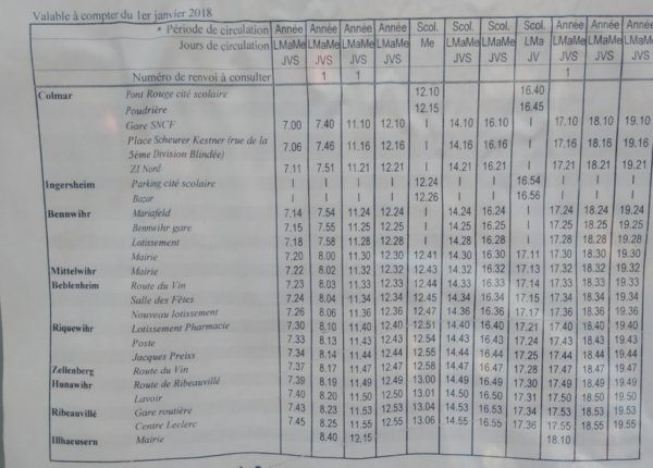 Чтобы начать изучать окрестности Кольмара на общественном транспорте, нужно найти автовокзал, который находится рядом с железнодорожным вокзалом. На самом деле, автовокзал — это просто несколько автобусных остановок. Вы можете посмотреть расписание на все автобусы, идущие из Кольмара, на сайте. Цены начинаются от пары евро. Билеты можно купить прямо у водителя.