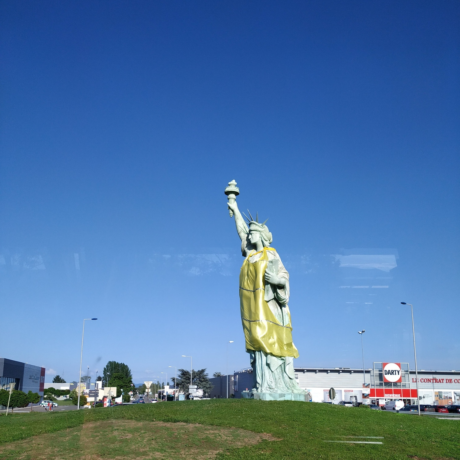 Кстати, на выезде из Кольмара стоит уменьшенная копия Статуи Свободы. Не знаю, почему она здесь, но здесь жёлтые жилеты впервые за нашу поездку дали о себе знать.