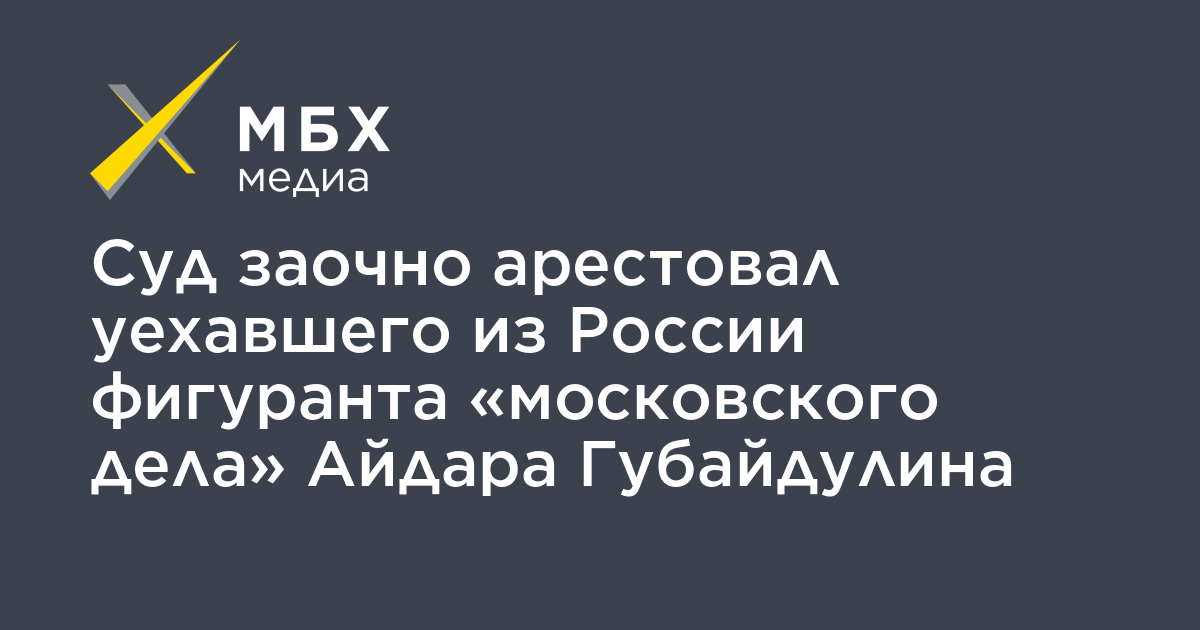 Басманный районный суд заочно арестовал на два месяца фигуранта «московского дела» Айдара Губайдулина, который уехал из России. Об этом сообщает корреспондент «МБХ медиа».