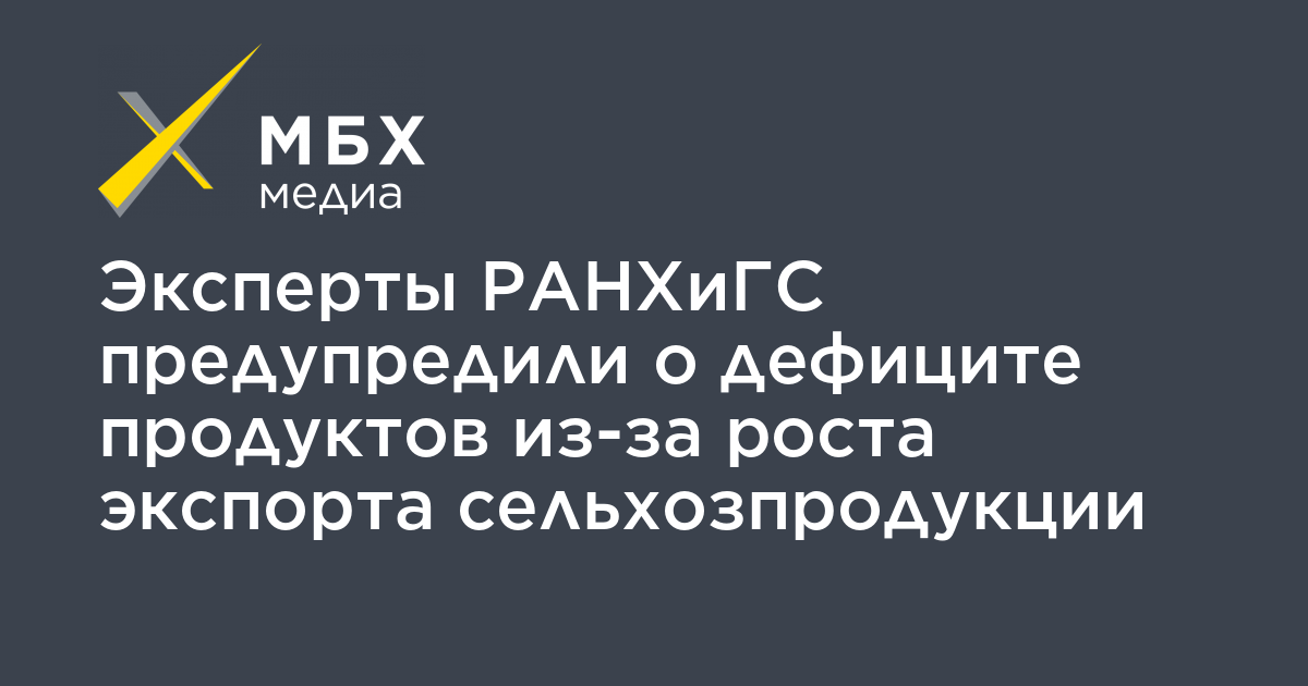 Эксперты РАНХиГС предупредили о дефиците продуктов из-за роста экспорта сельхозпродукции