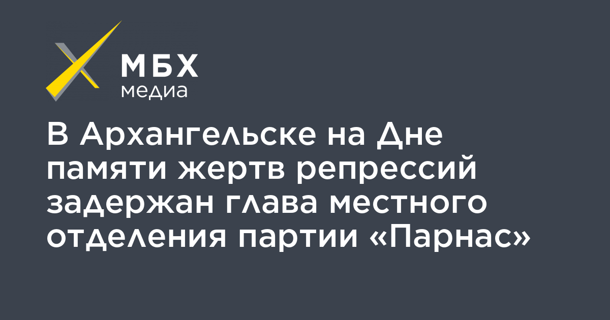 В Архангельске на пикете в День памяти жертв политических репрессий рядом со зданием ФСБ задержали руководителя регионального отделения партии «Парнас» Юрия Щербачева, об этом сообщает «Северо-Запад. МБХ медиа».