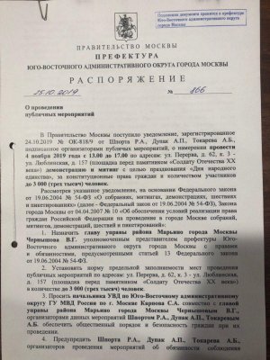 Организаторам «Правого Марша», который уже был согласован префектурой ЮВАО, сегодня выдали отказ, датируемый 25 октября. Они считают, что отказ в проведении мероприятия не имеет законного основания и политически мотивирован, сообщил ОВД-Инфо Иван Белецкий, организатор «Русских маршей» 2016–2017 годов.