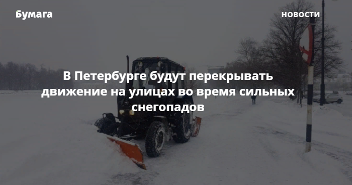 Власти Петербурга намерены перекрывать движение во время сильных снегопадов