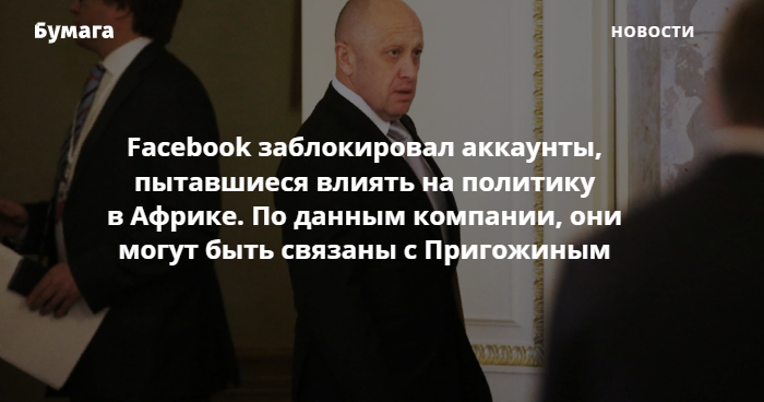 Как следует из заявления, все заблокированные страницы имеют российское происхождение, а управляют ими организации, связанные с бизнесменом Евгением Пригожиным.