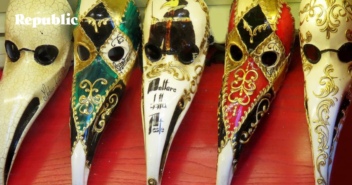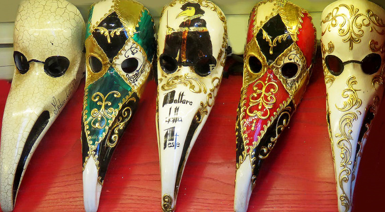 Культурная память: маска "чумного доктора", клюв которой заполнялся душистыми травами и служил респиратором во время обхода больных, превратилась в популярный венецианский сувенир. Венеция всегда особенно тяжело страдала от эпидемий чумы