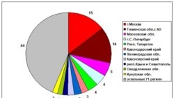 То же с инвестициями. Лидер – Тюменская область, на втором месте – Москва. Из всей Сибири на графике можно где-то там заметить опять же Красноярский край благодаря его нефтяным проектам. Общая же доля сибирских регионов в инвестициях в экономику России – не более 10%.