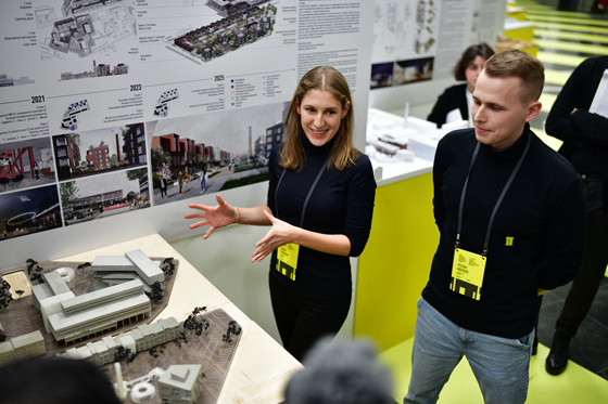 © II Российская молодежная архитектурная биеннале Ксения Воробьева Ксения Воробьева — единственная на биеннале девушка, которая была заявлена не в составе группы, а сама по себе, как самодостаточная творческая единица. Редевелопментом промышленных зон она занималась во время учебы в МАРХИ, потом в качестве ГАПа принимала участие в тендерах бюро Kleinewelt Architekten. О биеннале узнала случайно, в последний момент, увидев объявление в Инстаграме. В результате не просто вышла в финал, а была удостоена упоминания жюри за детально продуманную стратегию. Она моделировала, в первую очередь, не здания, а разного рода активности; архитектурные оболочки шли как бы за людьми, что минимизировало риски. Вначале создавалась штаб-квартира по реконструкции промзоны, следующий этап — площадки для спортивных занятий, затем — ресторан и кинозал, и только на последних этапах обитаемая к тому времени территория получала жилые корпуса и отель.