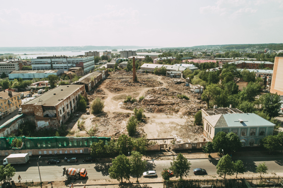 © II Российская молодежная архитектурная биеннале Завод «Сантехприбор» — пять гектаров руинированных территорий с вкраплениями исторических зданий. В булгарские времена тут была деревня Бишбалта («Пять топоров»), славная плотниками и столярами, в XVIII веке работала верфь (и весь район до сих пор называется Адмиралтейской слободой), в XIX веке территория стала сплошной промзоной с самыми разными производствами, а в 1947-м — заводом «Сантехприбор». Сегодня этот гигантский пустырь, граничащий со спальными кварталами, требует колоссальных инвестиций.