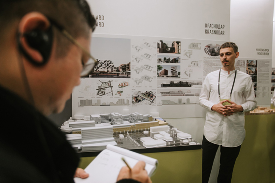 © II Российская молодежная архитектурная биеннале Алексей Тимофеев С Алексеем Тимофеевым из краснодарского Bureau ARD я разговаривала на пару с неким девелопером. Бизнесвумен смотрела на архитектора с интересом и уважением. В 5 га территории «Сантехприбора» Bureau ARD вместило 147 000 кв.м площадей (больше любого другого участника), при этом выдержав высотность домов на уровне 9–10 этажей. Как в наимоднейших московских комплексах, жилые корпуса поставлены на стилобат, в котором упрятан полуподземный паркинг на тысячу автомобилей. Созданию проекта предшествовало мощнейшее маркетинговое исследование.