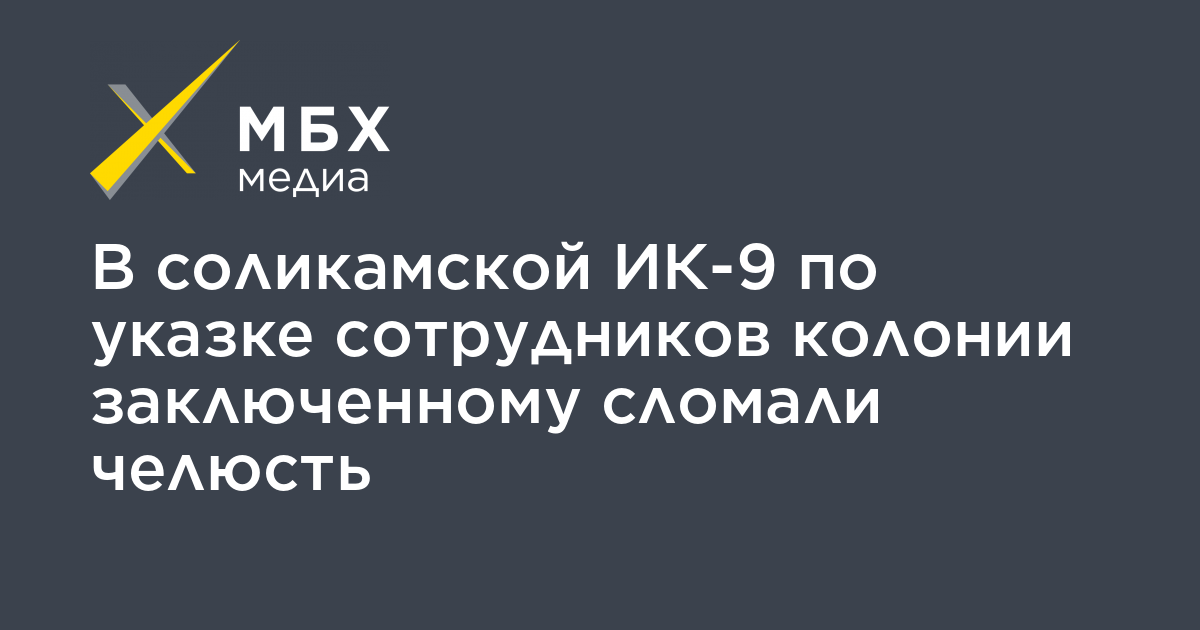 В соликамской исправительной колонии №9 (ИК-9) с одобрения администрации избили осужденного Александра Вдовина, сломав ему челюсть, об этом «МБХ медиа» сообщил основатель правозащитного проекта Gulagu.net Владимир Осечкин.