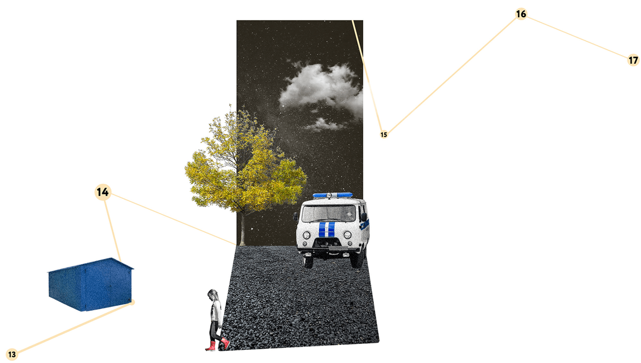«В это время все ещё активно продолжали разъезжаться по заданиям. Меня включили в небольшую группу, и мы поехали на „точку“, — рассказывает Елена. — И пока мы ехали, мне написали люди, что нашли тело. Потом информация появилась в новостных агентствах, поэтому мы отправились назад в штаб. Стали спрашивать у представителей „Лизы Алерт“, они говорят: мы ничего сказать не можем, действуйте согласно своей совести. Тут среди волонтёров началось брожение, пошли разговоры, что что-то происходит в гаражах и надо идти туда. Люди группами двинулись. Это были те, кто ещё не получил заданий, или только что вернулись, или, как мы, узнали о гибели девочки в дороге».