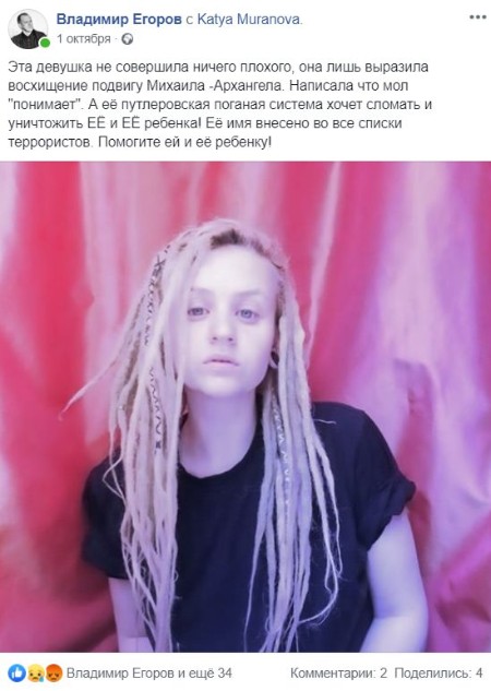 После обыска Егорова отвезли в полицию. Там сотрудник ФСБ заявил ему, что он пользовался фейковой страницей во "Вконтакте" с украинской сим-карты. Кроме того, как написал активист в Фейсбуке, ему "шьют оправдание терроризма" (статья 205.2 УК) за то, что он поддержал Екатерину Муранову - фигурантку дела по статье 205.2, которой вменяют публикацию поста и комментария во "Вконтакте" о самоподрыве анархиста Михаила Жлобицкого в Архангельске.