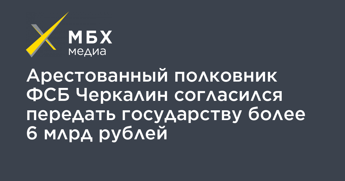 Арестованный полковник ФСБ Черкалин согласился передать государству более 6 млрд рублей