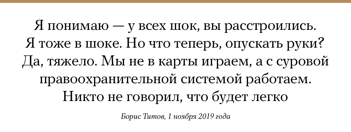 Уполномоченный по защите прав предпринимателей Борис Титов спустя сутки прокомментировал приговор первому участнику его «лондонского списка», который вернулся в Россию. 31 октября суд признал Андрея Каковкина виновным в мошенничестве и назначил ему три года колонии. Титов повторил, что правоохранительные органы гарантировали лишь то, что предприниматель не будет находиться под стражей до приговора. Но сам приговор его шокировал, так как случай Каковкина он считает не уголовным преступлением, а гражданским спором. Омбудсмен напомнил, что по трем участникам его списка уголовные дела прекращены (так было и с Каковкиным, затем дело возобновили), один был амнистирован, двое получили условные сроки.