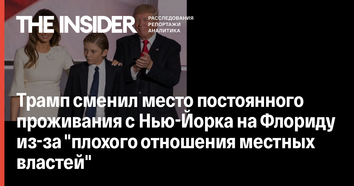 Трамп сменил место постоянного проживания с Нью-Йорка на Флориду из-за "плохого отношения местных властей"