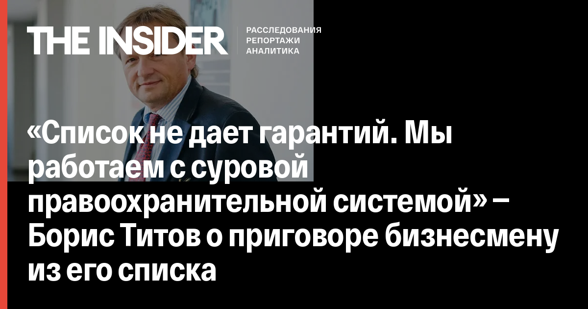 «Список не дает гарантий. Мы работаем с суровой правоохранительной системой» — Борис Титов о приговоре бизнесмену из его списка