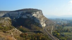 Сверху открывается потрясающий вид. Обзор на десятки километров, а это самое главное для оборонительной крепости. На соседней Загайтанской скале можно заметить немало вырубленных многоярусных пещер. Левая часть скалы полностью «съедена» карьером, в котором добывали инкерманский камень-известняк. Из него построена большая часть домов «старого» Севастополя, из-за чего город называют белокаменным. Внизу – железная дорога.