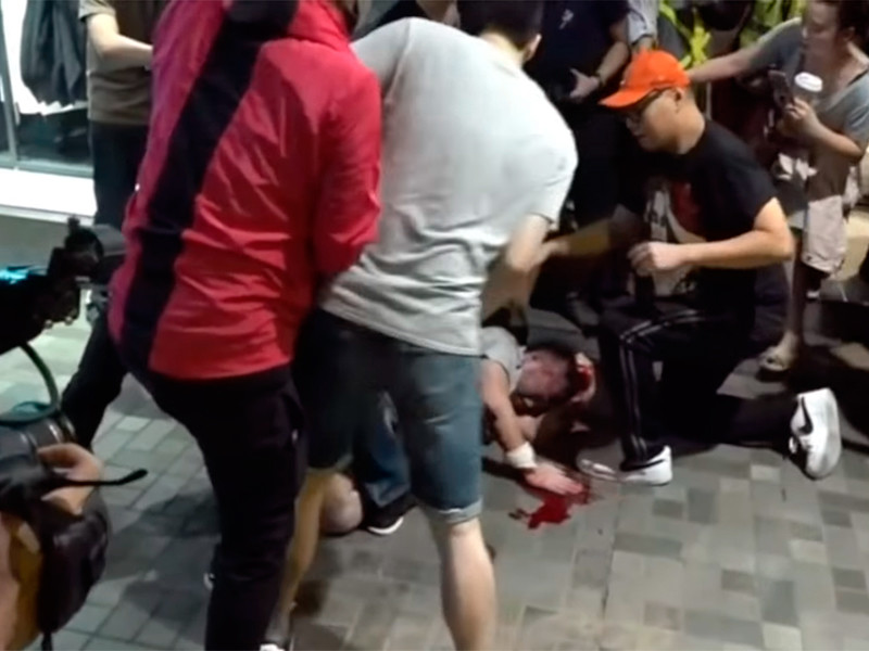 Нанеся раны нескольким людям, он также причинил увечье местному депутату райсовета от оппозиционной Демократической партии Эндрю Чю, откусив ему ухо, когда тот попытался схватить и остановить преступника. Нападавший затем был избит толпой демонстрантов.