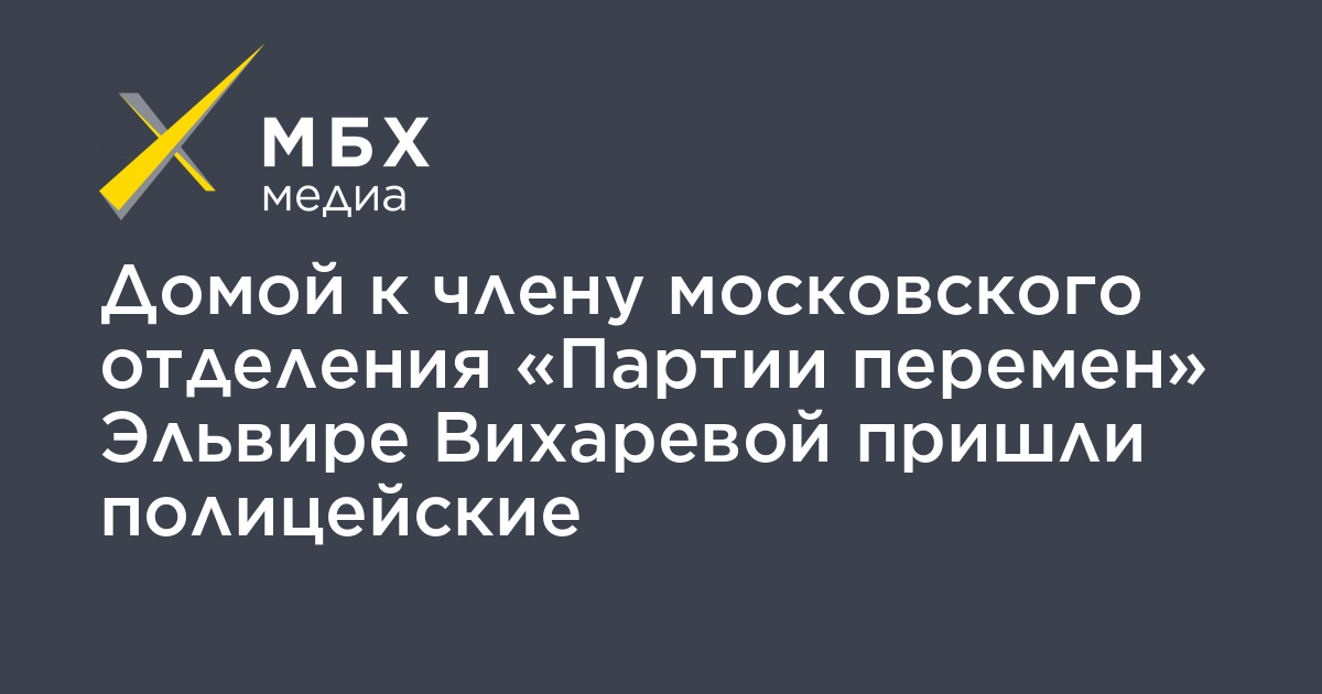 Домой к члену политсовета московского отделения «Партии перемен» Эльвире Вихаревой пришли полицейские. Об этом она рассказала «МБХ медиа».