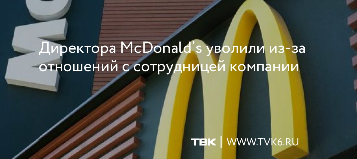 Исполнительного директора McDonald’s Стива Истербрука уволили из-за его отношений с одной из сотрудниц компании. Несмотря на то, что 52-летний Истербрук разведен, а любовная связь была обоюдной, он нарушил корпоративные правила, которые запрещают романы между работниками компании.
