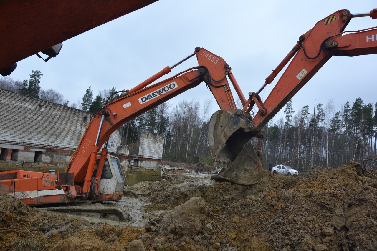 27 октября на территорию недостроенного онкологического центра в Радужном пригнали 2 экскаватора для расчистки территории.