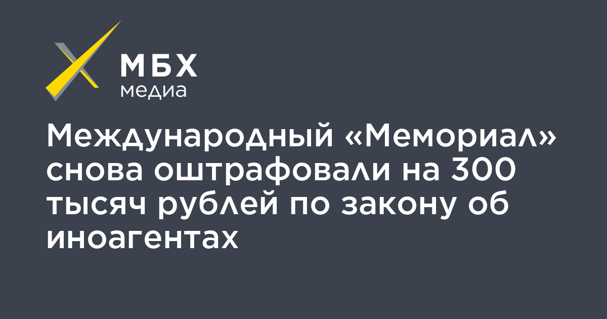Международный «Мемориал» снова оштрафовали на 300 тысяч рублей по закону об иноагентах