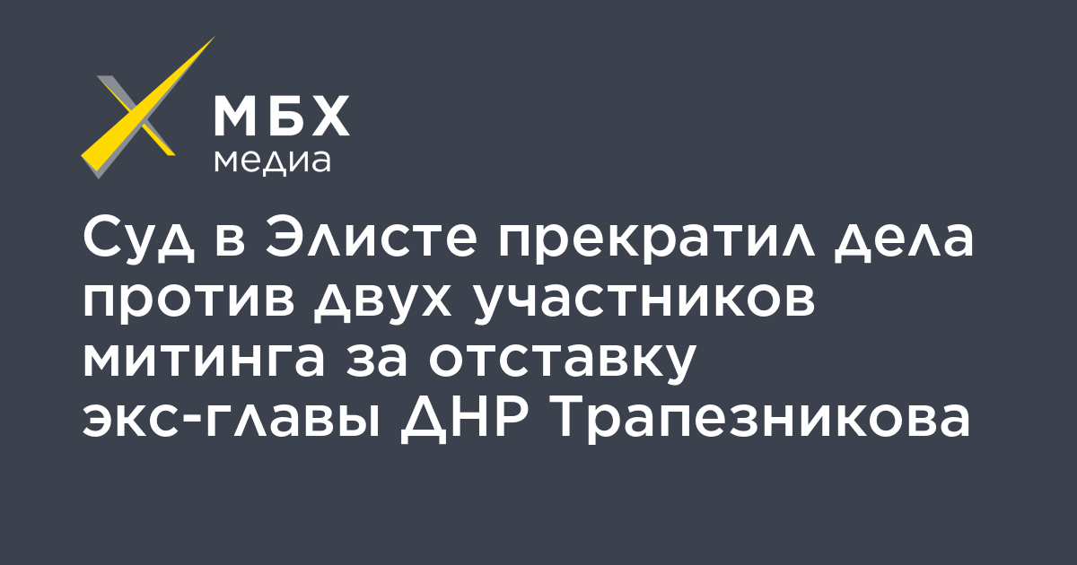 Элистинский городской суд прекратил административные дела против Санала Убушиева и Ивана Чучеева — участников митинга за отставку экс-главы ДНР Дмитрия Трапезникова, который был назначен мэром города. Об этом сообщил «МБХ медиа» Убушиев.