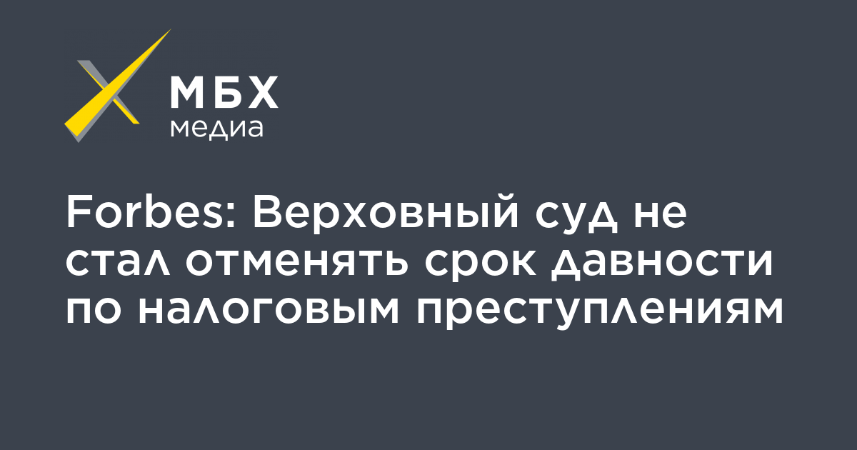 Forbes: Верховный суд не стал отменять срок давности по налоговым преступлениям