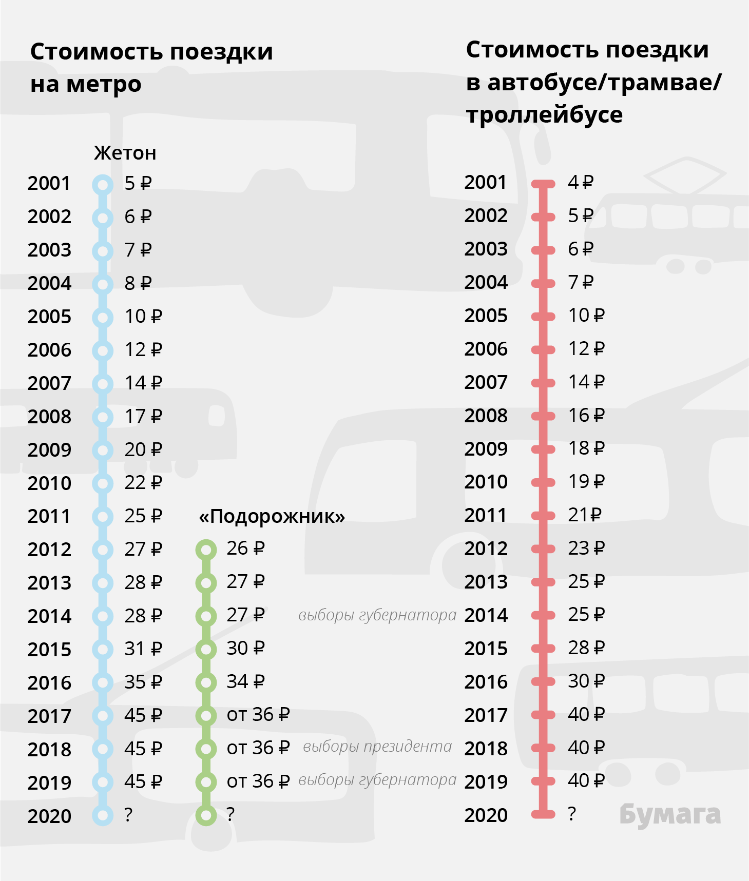 Посмотрите, как менялась стоимость проезда с 2001 года