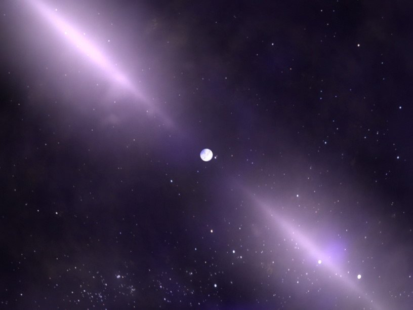 Нейтронные звезды — сверхплотные космические тела, имеющие радиус около 10 км и массу, достигающую значений в 1,4-2,5 массы Солнца. Рождаются нейтронные звезды в результате вспышек сверхновых, когда вещество из-за гравитации сжимается настолько сильно, что электроны фактически сливаются с протонами и образуют нейтроны. Отсюда получаются такие огромные массы при столь скромных размерах. Более того, при сжатии также сохраняется магнитный поток, и если величина магнитного поля на поверхности звезды-прародителя была порядка 1 Гс (как, например, на Земле), то после коллапса магнитное поле на поверхности нейтронной звезды достигает величин примерно 1011-1012 Гс (что превышает величину максимально достижимого в земных лабораториях магнитного поля в десятки миллионов раз). В большинстве случаев конфигурация магнитного поля нейтронной звезды соответствует диполю, то есть существуют два полюса (как и в случае Земли, где есть северный и южный магнитные полюса).